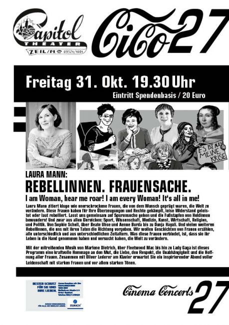 Wir wollen Geschichten von Frauen erzählen, alle unterschiedlich und aus unterschiedlichen Zeitaltern. Mit der mitreißenden Musik von Marlene Dietrich, über Fleetwood Mac bis hin zu Lady Gaga ist dieses Programm eine kraftvolle Hommage an den Mut, die Liebe, den Respekt, die Unabhängigkeit und die Hoffnung aller Frauen. Zusammen mit Oliver Lederer am Klavier erwartet Sie ein inspirierender Abend voller Leidenschaft, starken Frauen und vor allem starken Tönen.
